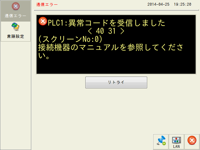 エラーが表示された画面に設定されたPLCメモリが原因になっていると考えられます。