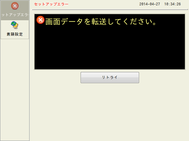 画面データが存在しない場合や本体プログラムが転送されていない場合に、本体上に表示されるエラーです。