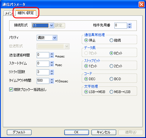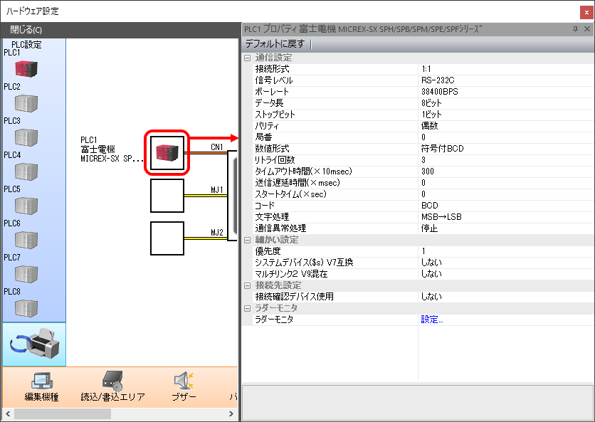 設定箇所 : V-SFT-6の[システム設定]→[ハードウェア設定]→[PLCxプロパティ]
