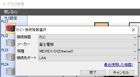 「システム設定」→「ハードウェア設定」→「PLC設定」をダブルクリック