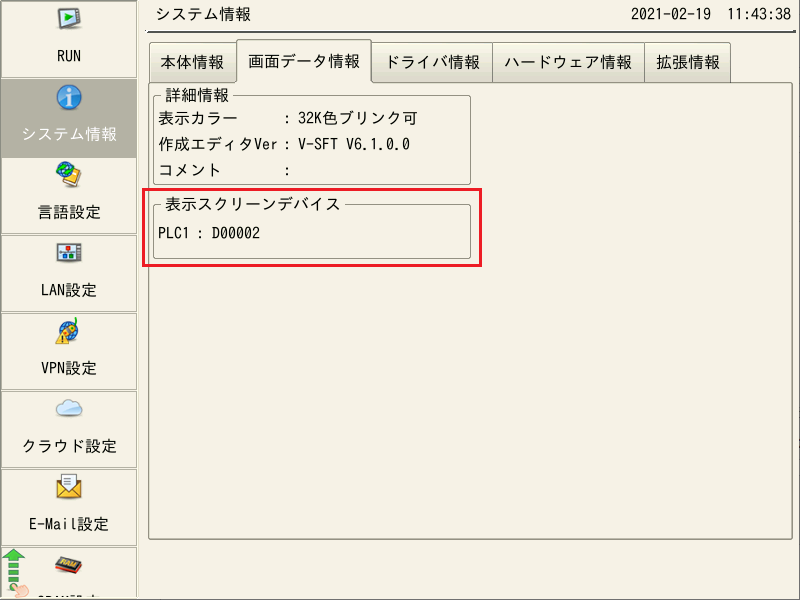 確認方法は、V-SFTとV10/V9本体のローカル画面の2通りあります。