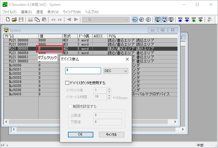 シミュレータの[System]ウィンドウ上に表示される[読込エリア]n+2 の値を