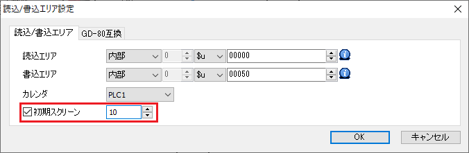 - V-SFTの[システム設定]→[ハードウェア設定]で、[読込/書込エリア]と