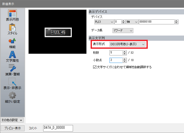 - 入力対象の表示形式が「DEC(符号あり-表示)」または「DEC(符号あり+-表示)」になっているか、確認してください。