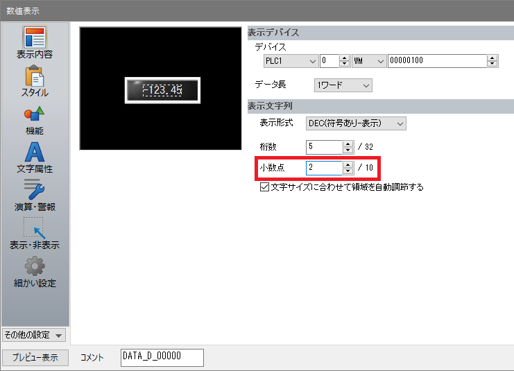 入力対象の小数点を設定してください。