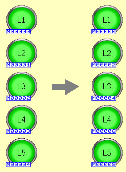例 : パターン数「3」のランプを5個、ランプデバイスM0000(ビット)から連番で設定