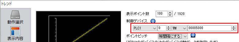 * トレンドグラフの[制御デバイス]、[表示ポイント数]について、詳しくは こちら を参照してください。