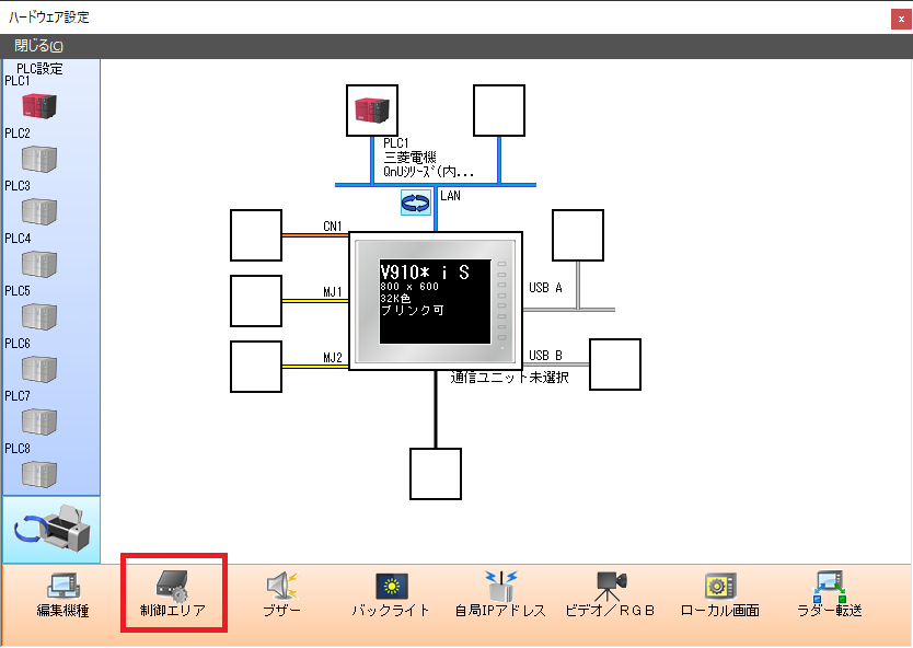 V-SFTの[システム設定]→[ハードウェア設定]→[制御エリア]