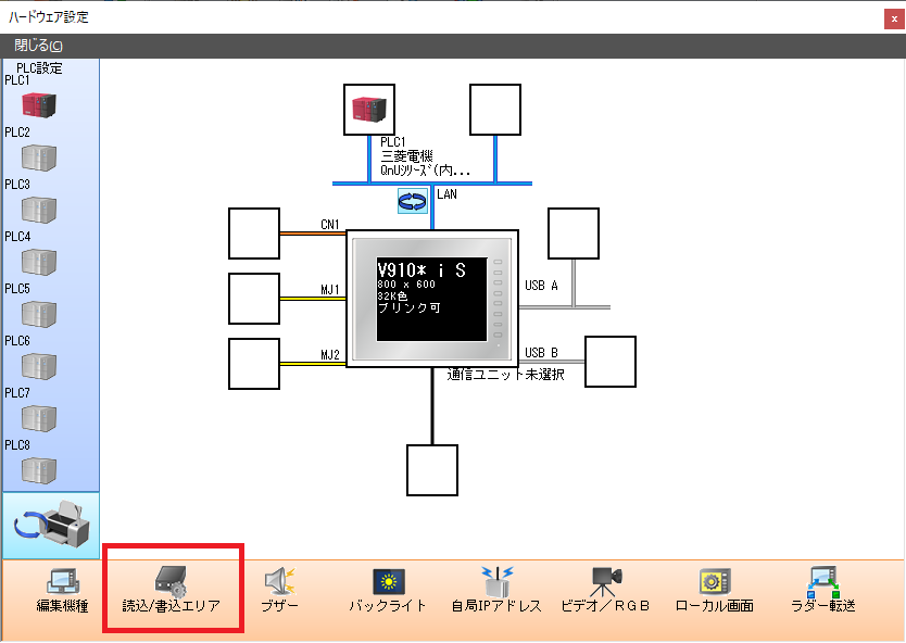 V-SFTの[システム設定]→[ハードウェア設定]→[読込/書込エリア]