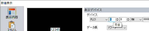 登録したPLCテーブルNoを、各アイテムのデバイスで局番として設定します。