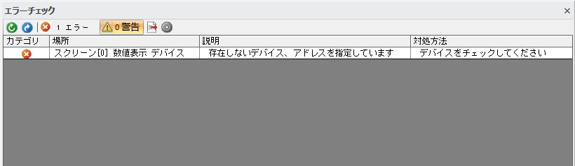 エラー箇所をダブルクリックすると、該当スクリーンの設定箇所にジャンプします。