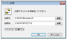 [比較元] (コピー元)と[比較先] (コピー先)のファイルをそれぞれ指定し、[□テキストで比較する]にチェックします。