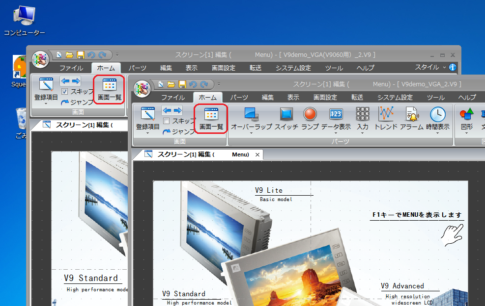 V-SFTを2つ起動し、コピー元とコピー先の画面データをそれぞれ開きます。