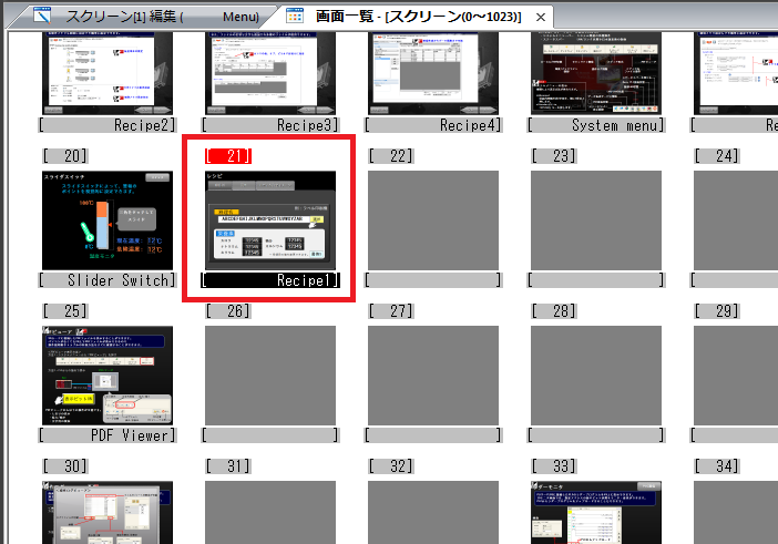 例:コピー元「V9demo_VGA(V9060用)_2.V9」のスクリーンNo.21をコピーする