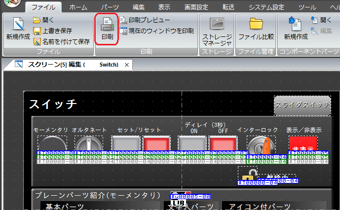 <h1 style="font-size:16.56px;padding:5px 0px 5px 40px;">スクリーンに配置したスイッチなどにデバイスを表示させて印刷したい。</h1>