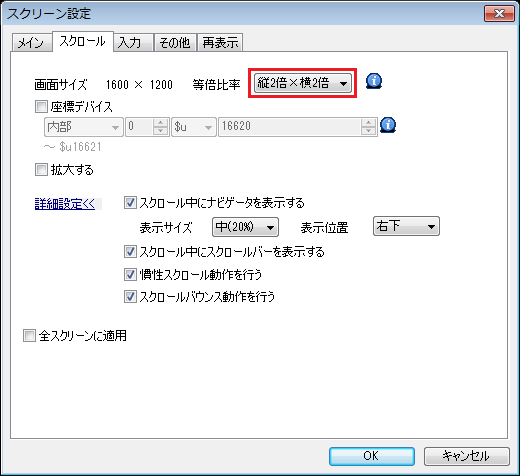 - 画面サイズを「縦2倍 x 横2倍」に設定し、[OK]をクリックします。