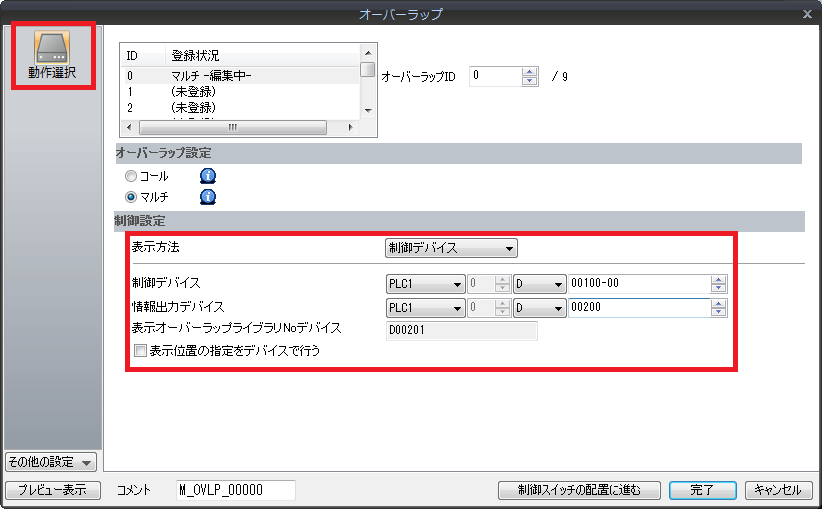 * 表示させるオーバーラップは、オーバーラップライブラリに登録します。