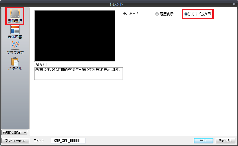 トレンドグラフ:[動作選択]→[表示モード]→「リアルタイム表示」