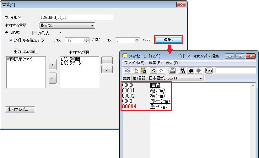 ロギング/アラームで出力したCSVファイルにタイトルを付けたい