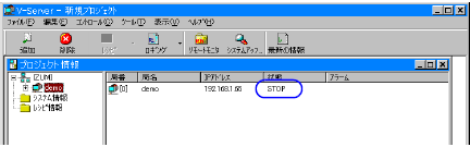 <V-Server>監視モニタの状態がすぐにSTOPになってしまう。