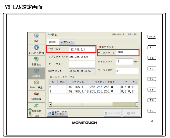 • V9シリーズのIPアドレスとポートNoは[LAN設定]画面で確認できます。