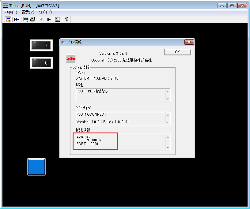 • TELLUS3/TELLUS2 HMIのIPアドレスとポートNoは[ヘルプ]の[バージョン情報]で確認できます。