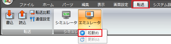 1. V-SFTの[転送]→[エミュレータ]→[起動]をクリックします。