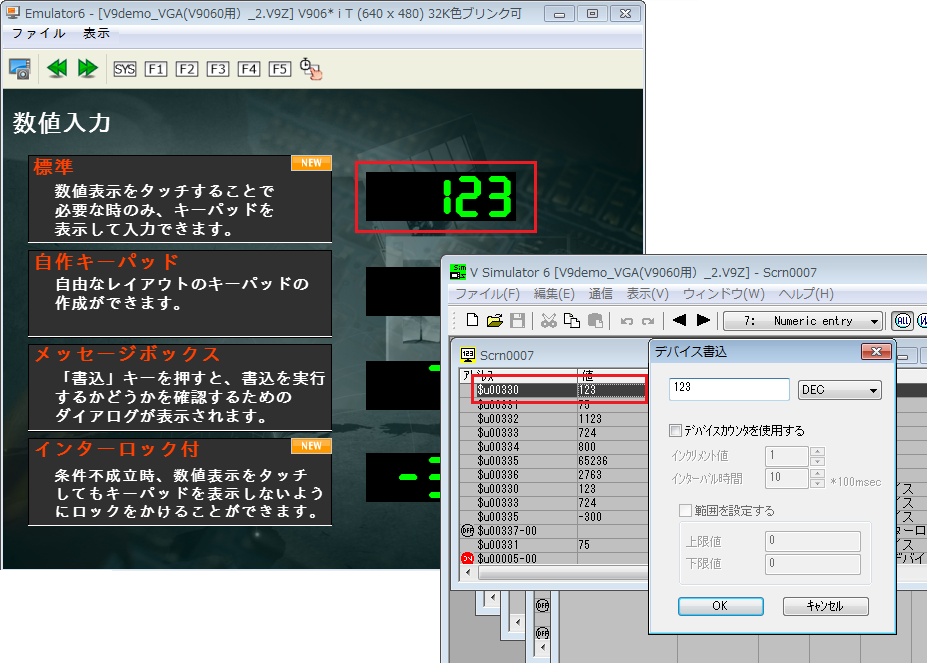• V10/V9/PLCとも本体がない場合  V-SFT-6のエミュレータを使用して確認します。