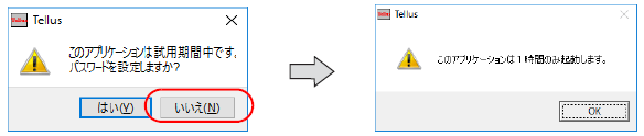 [いいえ]をクリックした場合は1 時間だけ使用可能です。