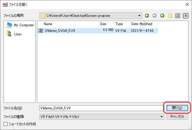 以下の画面データを使用する場合、画面データファイルの拡張子が「*.V9Z」である必要があります。