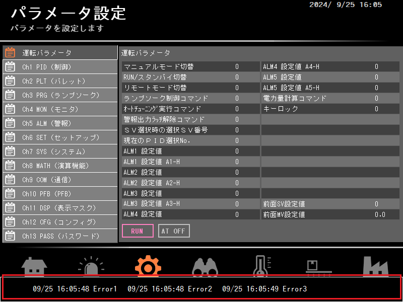 以上の設定で、アラーム発生時にスクリーン上にアラームメッセージが流れます。