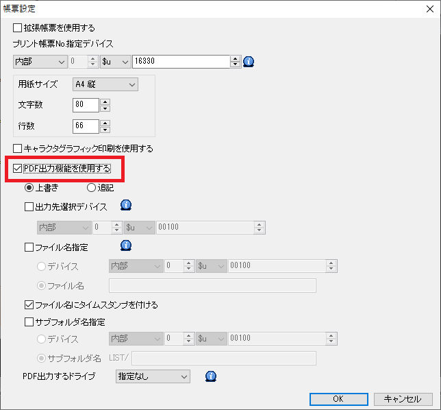 *[出力先選択デバイス]にチェックを入れると、帳票出力先や出力方法を