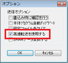 [転送]⇒[書込]⇒[オプション]で「高速転送を使用する」にチェックを付けて転送を実行します。