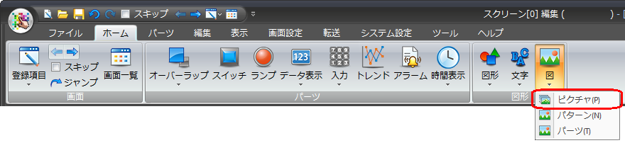 1. [ホーム]または[パーツ]→[図]→[ピクチャ]をクリックします。