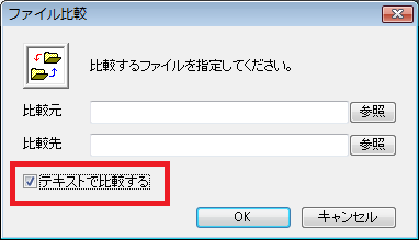 [ファイル]→[ファイル比較]で、「テキストで比較する」にチェックを付けて