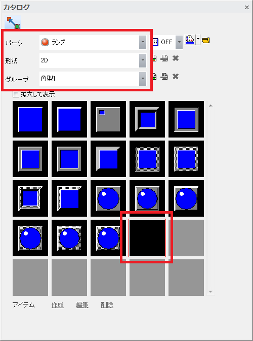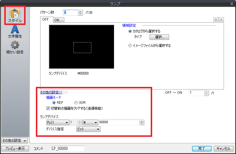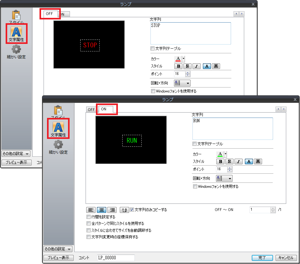 ビットのON/OFFで、表示文字だけを切り替えて表示したい。
