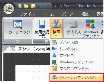1. [ツール]→[検索]→[クロスリファレンス]をクリックします。