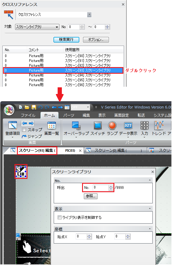 - 使用箇所をダブルクリックすると該当箇所が表示されます。