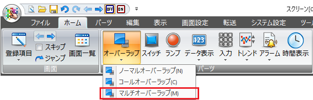 1. [ホーム]または[パーツ]→[オーバーラップ]→[マルチオーバーラップ]をクリックし、オーバーラップアイコンを配置します。