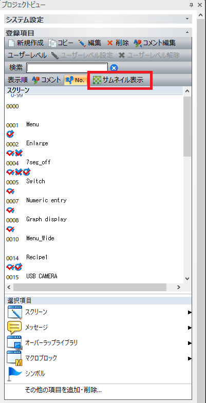 ※サムネイル表示をやめると、より、多くのスクリーンを一度に確認できます。