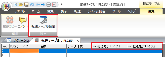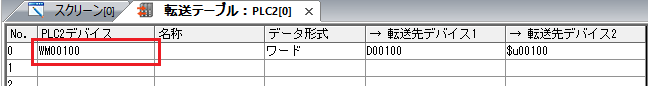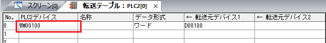 [システム設定]→[転送テーブル]→[PLCn]→転送テーブルNo. を選択して「OK」をクリック します。