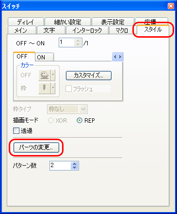 [スイッチ]アイテムビュー→[スタイル]→[パーツの変更]をクリックします。