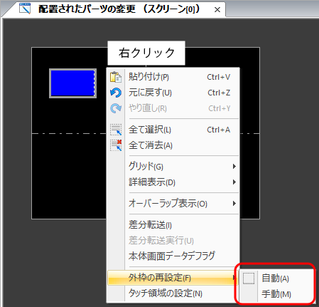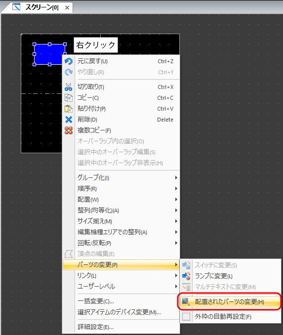 右クリックのメニュー→[パーツの変更]→[配置されたパーツの変更]