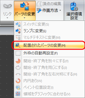 [編集]→[パーツの変更]→[配置されたパーツの変更]