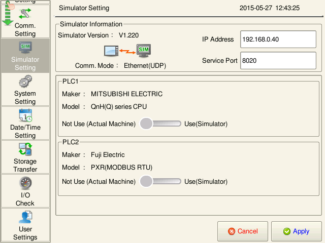 - Switch to Local mode and select [Simulator Setting] -> [Use] and press the [Apply] switch.
