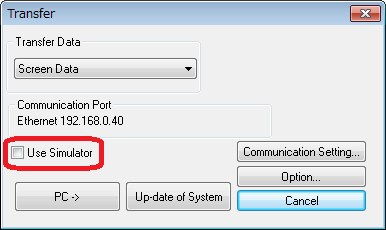 - Uncheck [Use Simulator], and click [PC->] to transfer the screen data again.