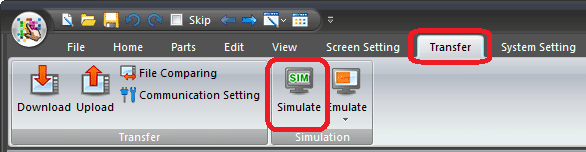 - Click [Transfer] -> [Simulator] on the configuration software to start the simulator.