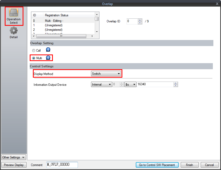 2. Double-click the multi-overlap icon and sselect [Multi] from [Overlap Setting] and select [Switch] from [Display Method] pulldown box.