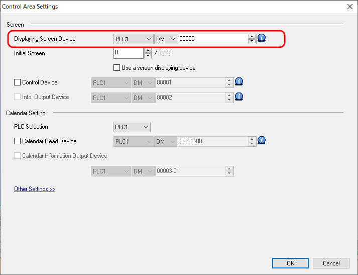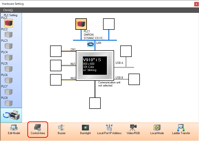 [System Setting] → [Hardware Setting] → [Control Area] in V-SFT