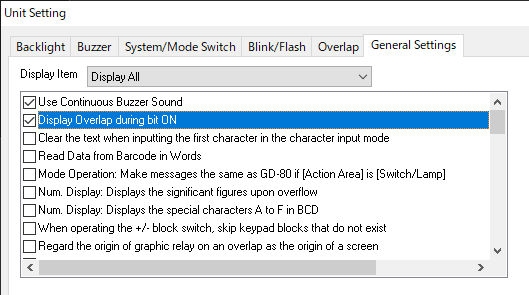To display the overlap part whenever the bit is ON, select [System Setting] → [Unit Setting] → [General Settings] and check [Display Overlap during bit ON].